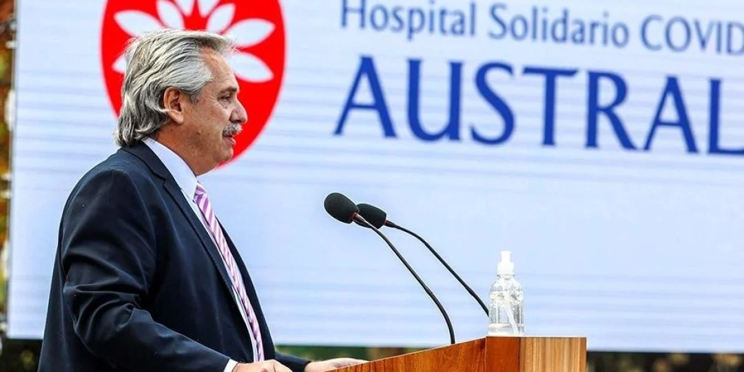 El presidente Alberto Fernández encabezó este lunes la inauguración del Hospital Solidario COVID-19 Austral en Pilar, Buenos Aires, perteneciente al Hospital Universitario Austral y que estará destinado a pacientes sin cobertura médica.