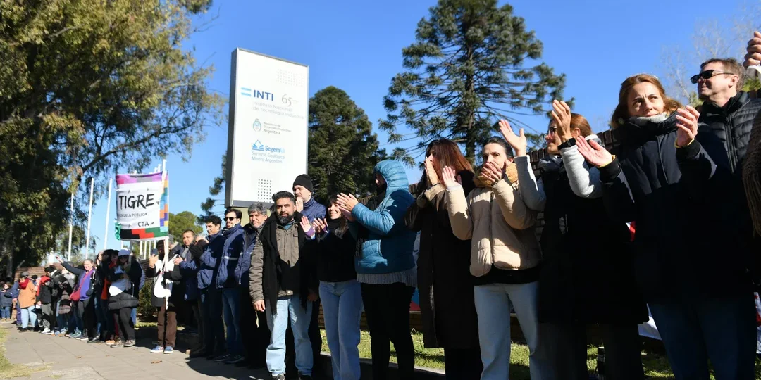 Este martes, trabajadores del Instituto Nacional de Tecnología Industrial (INTI) protagonizaron un abrazo simbólico en todo el país en rechazo al decreto impulsado por el Ministerio de Desregulación y Transformación del Estado, a cargo de Federico Sturzenegger.