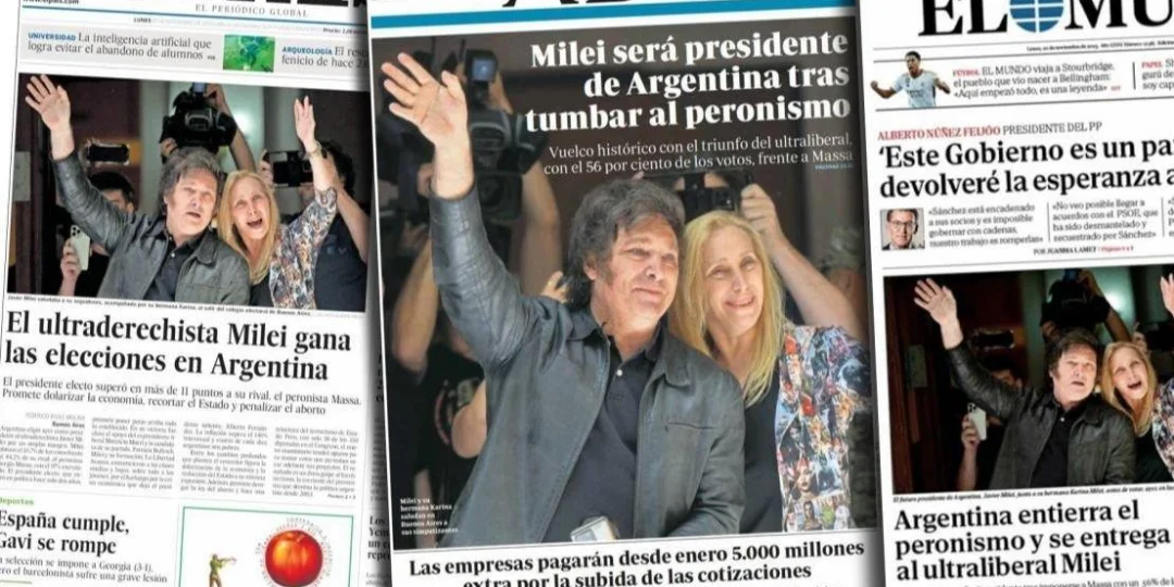 El triunfo de Javier Milei ante Sergio Massa en la segunda vuelta electoral tuvo fuertes repercusiones a nivel mundial. Los diarios de América y Europa se hicieron eco del triunfo de La Libertad Avanza y reflejaron el perfil de ultraderecha del candidato.