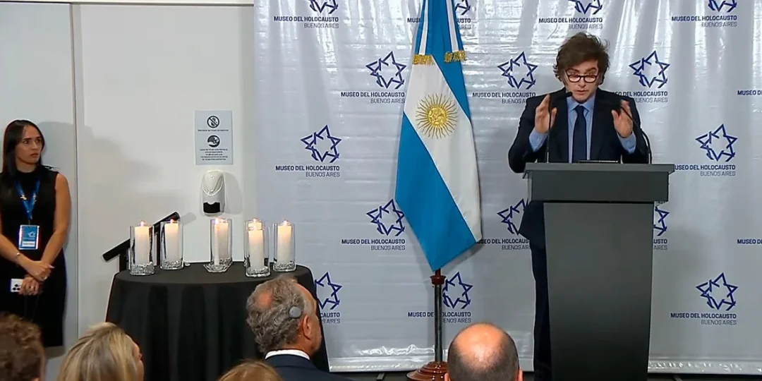 Para Milei, el mundo "está viviendo una situación que cada vez tiene mayores similitudes con lo que ocurría, previo al inicio del Holocausto" al sostener que los ataques a Israel traducen "el antisemitismo y el odio hacia la civilización occidental".