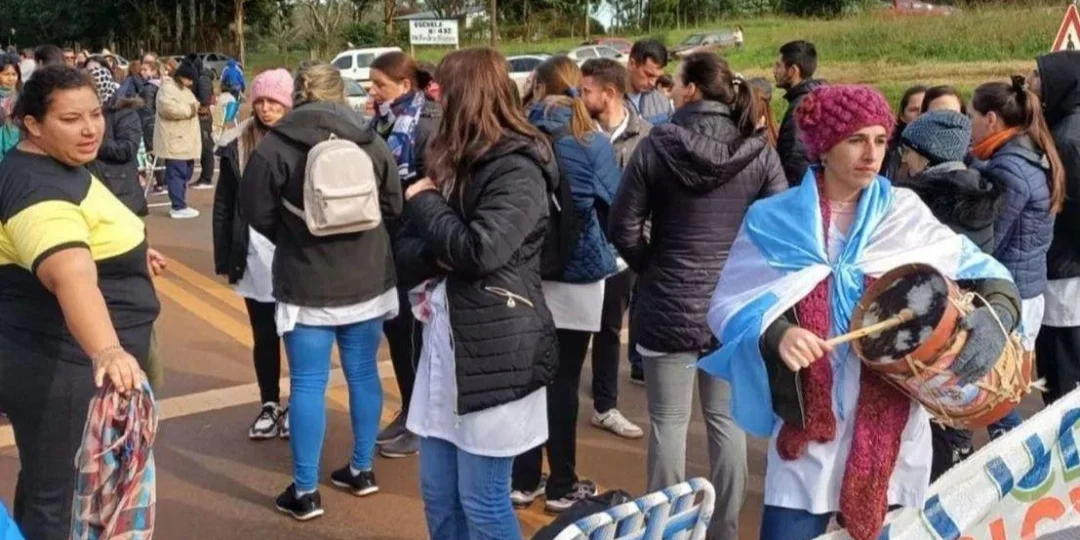 “Nosotros tenemos desde el año pasado 70 días de paro. Este año comenzamos el año con paros, exigiendo al gobierno de la provincia de Misiones un aumento salarial urgente. Así llegamos con paros de 24, 48 horas y hace dos semanas que el paro es total. Ahí es donde aparece la policía y se suma salud pública”, afirmó.