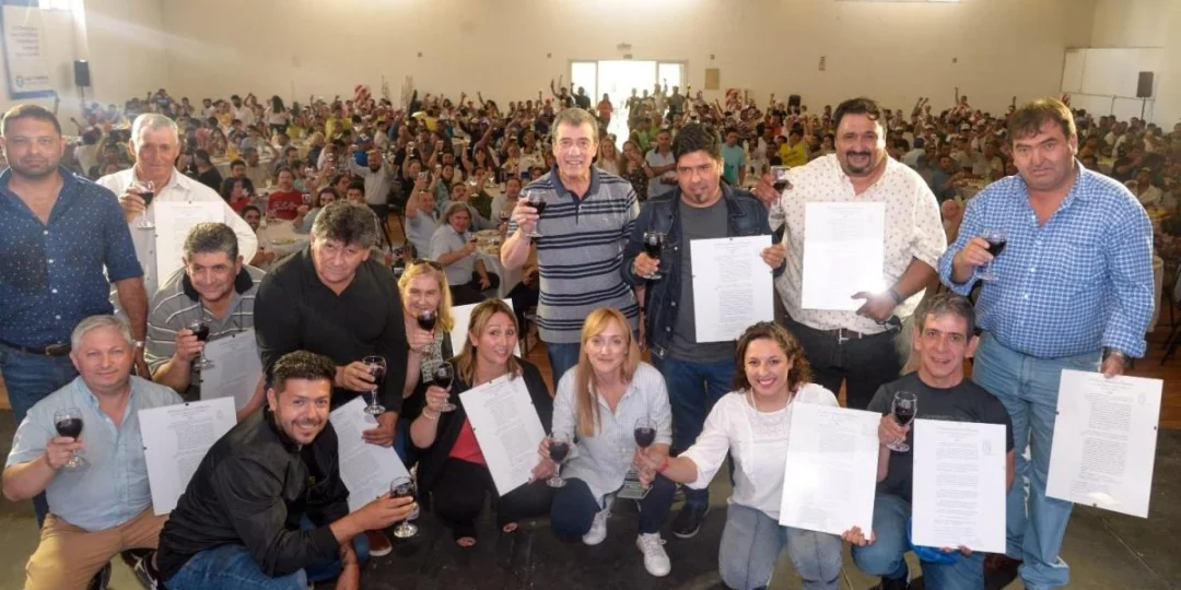 Durante su discurso, Sagasti destacó la presencia del sindicato de contratistas de viñas que participaron del acto, mientras que también celebró la Ley de jubilación anticipada de Viñateros, que permite a esos trabajadores jubilarse a los 57 años, entre otros beneficios.