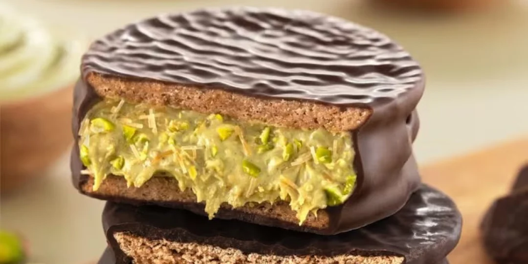 La receta busca recrear el sabor y la textura del alfajor viral, combinando una masa húmeda de cacao con un relleno de pistacho suave.