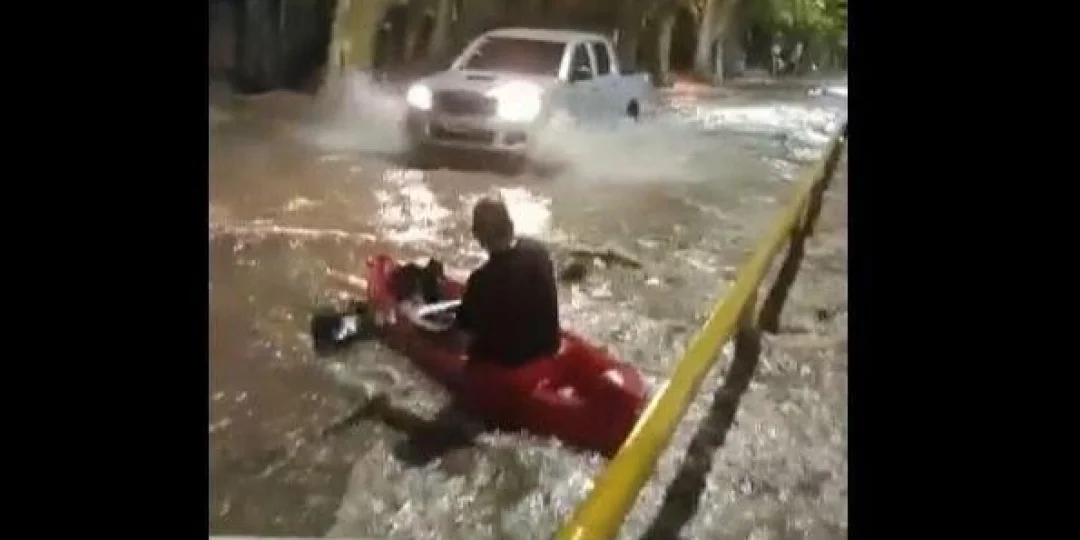 Pero la creciente en varias calles encendió la mecha en la mente de un vecino de Luzuriaga, en el departamento de Maipú. El hombre, propietario de un kayak, no dudó un instante en sacar su embarcación y ensayar un par de movimientos de remo por el carril Sarmiento, que corre de Oeste a Este.