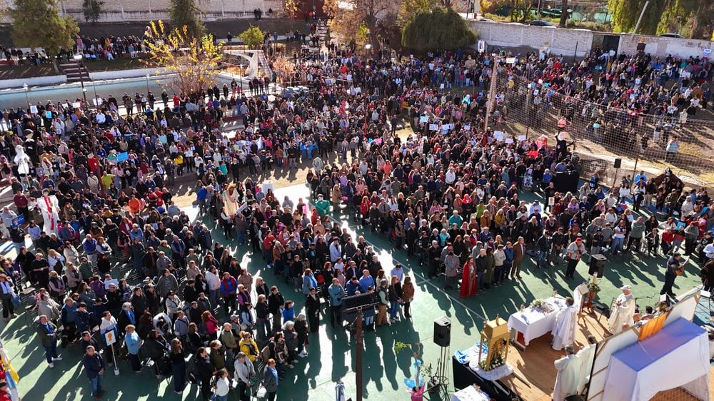 Entre los presentes se encontraban el intendente Esteban Allasino y la reina departamental de la Vendimia, quienes acompañaron la caminata hasta el estadio, donde se celebró una misa alrededor de las 11 de la mañana.