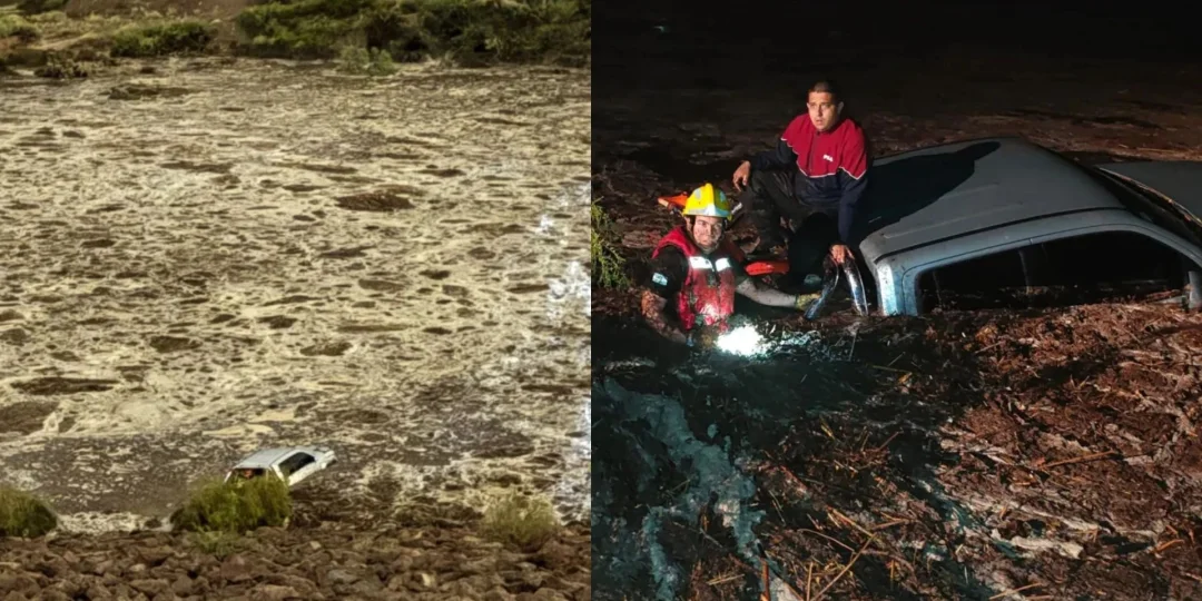 Rescate: Tres motociclistas que realizaban prácticas en el Dique Frías quedaron atrapados cuando una repentina crecida por la tormenta los alcanzó. Web