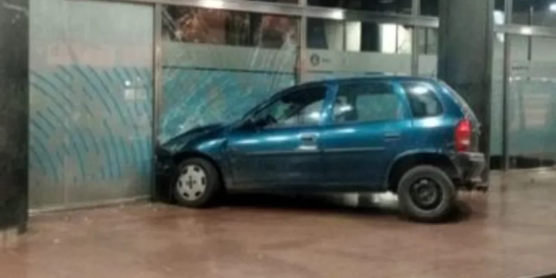 En las imágenes viralizadas en redes sociales se observa al auto contra el vidriado, el cual casi se rompe, lo que podría haber provocado un desenlace peor.