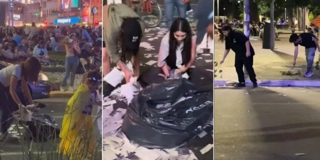 El triunfo de Javier Milei desató grandes festejos en todo el país, la diferencia a favor sacada ante su contrincante Sergio Massa hizo que los festejos fueran muy coloridos, bulliciosos con abundancia de papelitos, banderas, gente comiendo, todo con una algarabía total. Pero lo que llamó la atención fue que luego de festejar la gente se puso a limpiar el lugar.