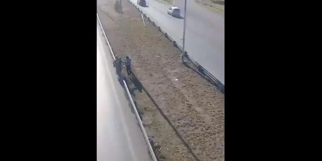 Luego de algunos minutos de tránsito muy fluido, el hombre cruza el acceso de la mano de uno de sus hijos y alzando al otro, mientras que la mujer, dados los gritos que le pegaba la testigo que filmaba la escena desde arriba del puente, decide irse más lejos y allí atraviesa el acceso con otro de los niños.