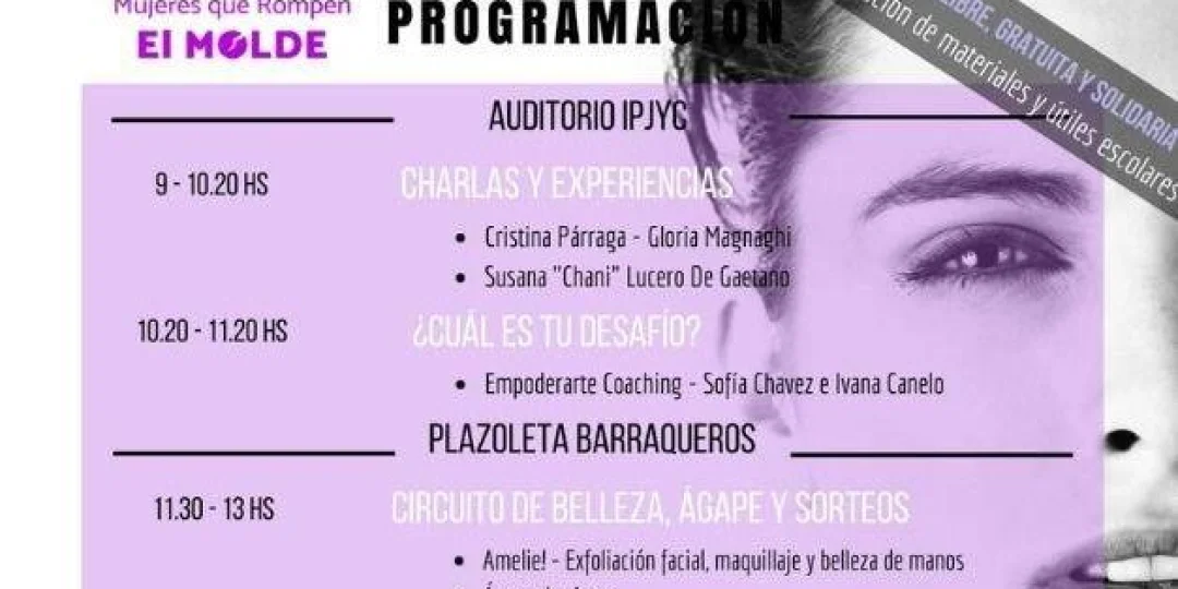 Desde dicha consultora, invitan a los mendocinos y mendocinas al ciclo de Charlas y Experiencias Vivenciales “Mujeres que Rompen el Molde”, el día 22 de Marzo de 9 a 12.30 horas, en el Auditorio del IPJyC (Hipólito Yrigoyen 31, Ciudad). Allí se oirán experiencias de mujeres mendocinas que dedicaron su vida a romper con los estigmas sociales, se aprestaron al servicio social y al empoderamiento de la sociedad.