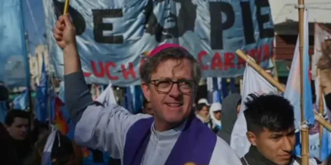 El arzobispo Jorge García Cuerva participó de la movilización coordinada por organizaciones sociales y sindicatos. "San Cayetano no le pregunta a nadie a quién vota", aseguró.
