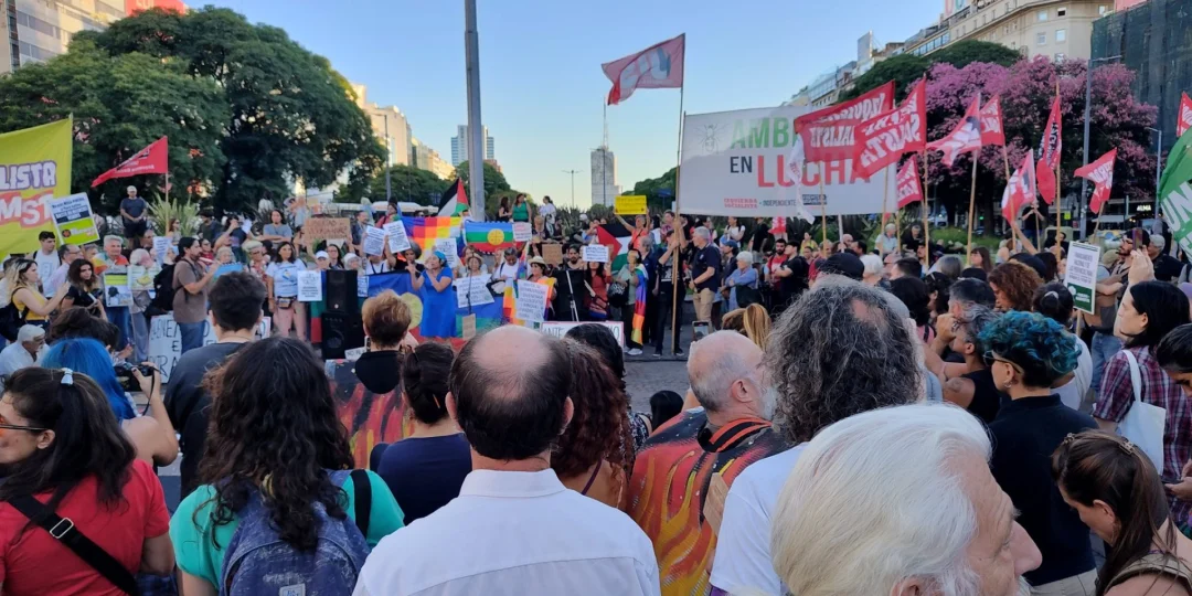 También se concentraron manifestantes en el Obelisco porteño, en el epicentro de la Ciudad de Buenos Aires, desde donde se movilizaron a la Plaza de Mayo para reclamar al Gobierno nacional que destine más recursos para contener los focos de incendios.