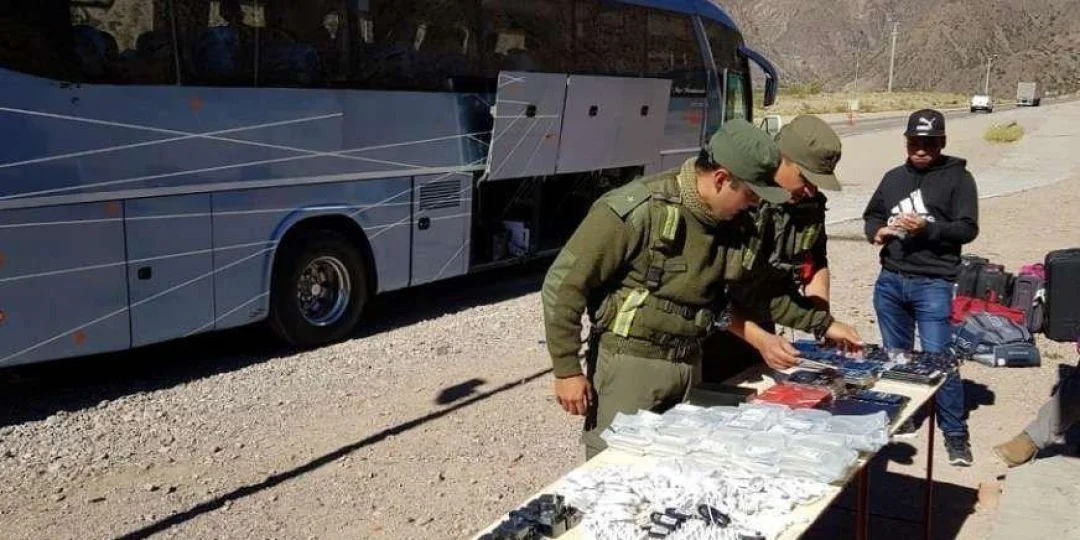 Escondidos en diversos lugares de un micro que venía de Chile, Gendarmería Nacional secuestró 50 celulares de alta gama valuados en $827.000.