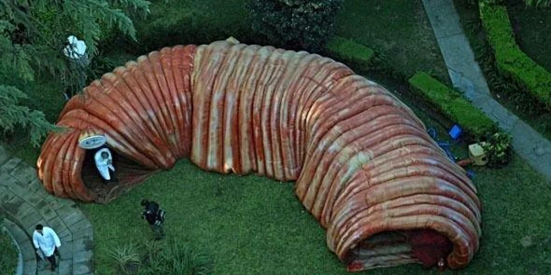 Se trata de un inflable que según algunos usuarios en redes sociales parece "chinchulin" pero en realidad representa a un colon (intestino grueso) gigante.
