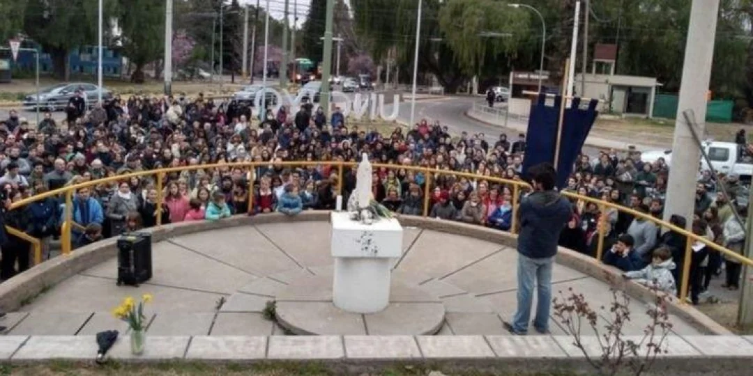 Sin embargo, en poco tiempo un grupo de fieles se convocó por las redes sociales para restituir la figura religiosa. Las familias se habían reunido frente a la rotonda de ingreso del espacio universitario para celebrar el retorno de la imagen de la Virgen con cantos y con una ofrenda floral.