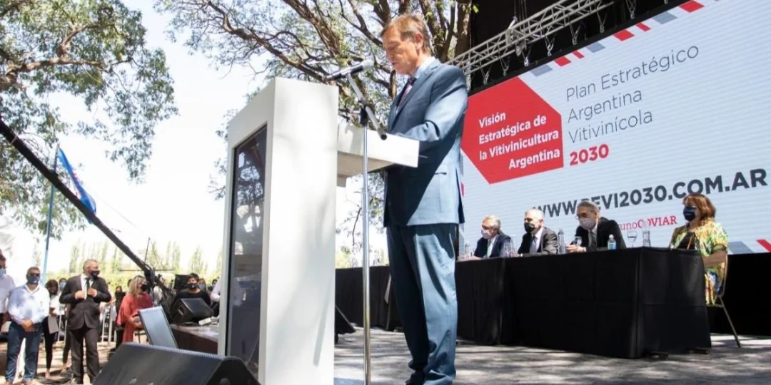 Durante el desayuno de la Corporación Vitivinícola Argentina (COVIAR) este sábado, con la presencia del presidente Alberto Fernández, el gobernador Rodolfo Suárez presentó el Plan Estratégico Argentina Vitivinícola 2030 frente a diversos referentes políticos en la sucursal del INTA de Luján de Cuyo.
