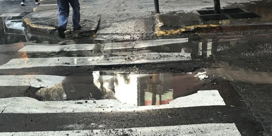 El hecho, es que una intersección sumamente concurrida vehicularmente como lo es el cruce de San Juan y Buenos Aires, tiene por estas horas un pozo casi de características lunares.