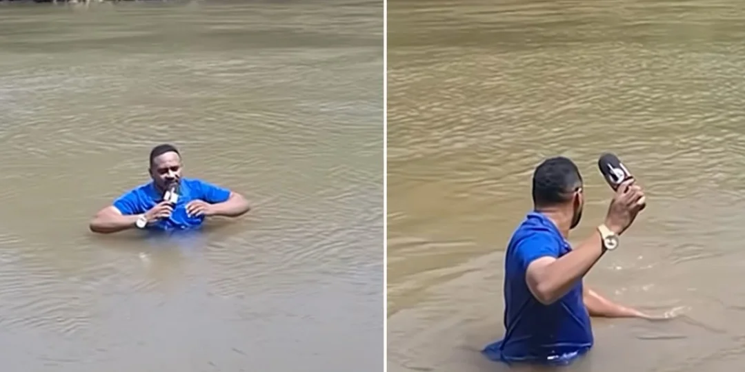 Lenildo Frazao grababa un informe sobre la desaparición de Raíssa, una adolescente que había sido vista por última vez cerca del río. Mientras le hablaba a la cámara, notó algo en sus pies: "Creo que hay algo acá abajo, en el fondo del agua", comentó con nerviosismo.