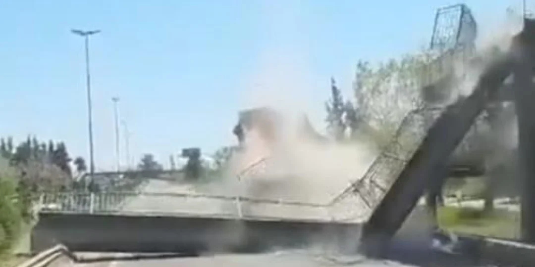 Video impactante: un camión batea derribó un puente peatonal en la Ruta 2
