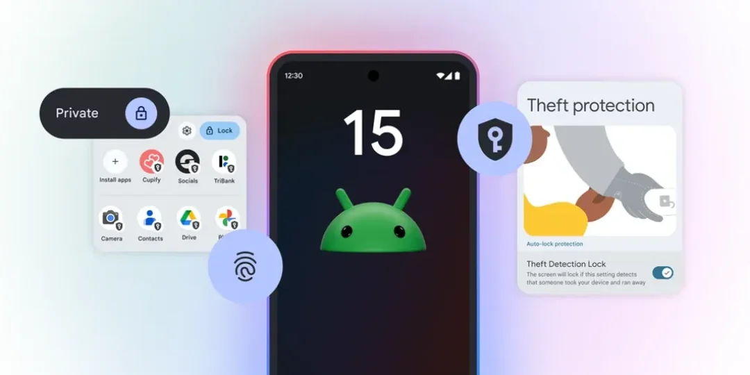 Una de las principales características de Android 15 es el Bloqueo por detección de robo, que utiliza Inteligencia Artificial para identificar movimientos bruscos asociados comúnmente con robos y bloquear instantáneamente la pantalla del teléfono.