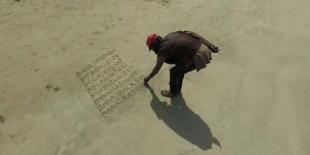 La imagen de un hombre escribiendo en una playa de África genera curiosidad en las redes. ¿Qué dice y en qué idioma?