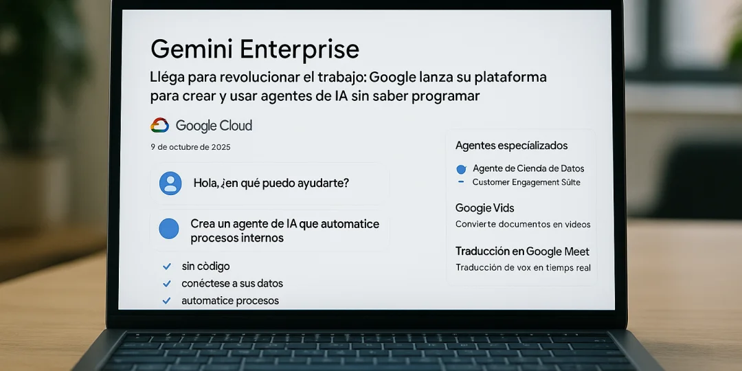 Google Cloud presenta Gemini Enterprise, una plataforma intuitiva para que los equipos creen agentes de IA sin código, se conecten a sus datos y automaticen procesos para mejorar la productividad.