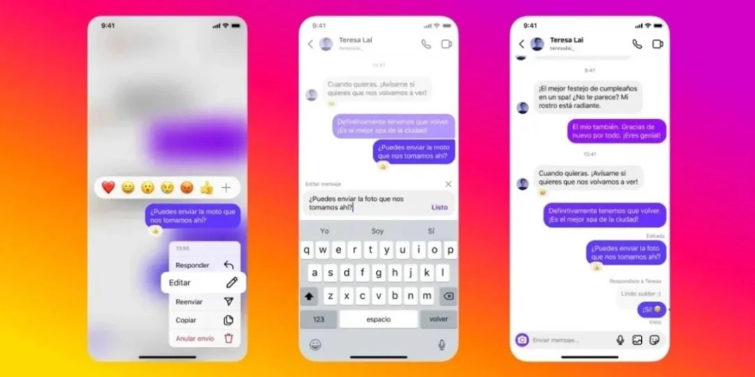 El anuncio, publicado en el blog oficial de Instagram, detalla cinco nuevas funciones que prometen cambiar la forma en que los usuarios envían y reciben mensajes en la aplicación. Edición de mensajes: la función más esperada es la capacidad de editar mensajes. Ahora, los usuarios tienen un margen de 15 minutos para corregir cualquier error después de enviar un mensaje. La edición se realiza manteniendo presionado el texto y seleccionando la opción "Editar" en el menú contextual. Aunque los mensajes editados mostrarán la etiqueta "Editado", no se guardará un historial de ediciones.Chats fijados y control de indicadores de lectura: los usuarios ahora pueden anclar hasta tres chats en la parte superior de su bandeja de entrada, facilitando el acceso a las conversaciones más importantes. Además, se introdujo la opción de controlar las confirmaciones de lectura, permitiendo a los usuarios desactivar esta función para mantener su privacidad. Stickers favoritos y respuestas versátiles: Instagram permite marcar stickers como favoritos para un acceso más rápido durante las conversaciones. Además, ahora se pueden enviar respuestas con una variedad de elementos, incluyendo GIFs, videos, fotos y mensajes de voz, lo que amplía las posibilidades de comunicación. Personalización de chats con temas: la introducción de temas permite a los usuarios personalizar sus chats según su preferencia. Desde temas de amor hasta opciones inspiradas en la cultura pop, hay una amplia variedad para elegir. Cambiar el tema de un chat es sencillo y se puede hacer de forma constante, sin compromisos. Gestión de confirmaciones de lectura: los usuarios tienen la opción de habilitar o deshabilitar las confirmaciones de lectura tanto para todos los chats en conjunto como para conversaciones individuales, brindando flexibilidad y control sobre la privacidad.