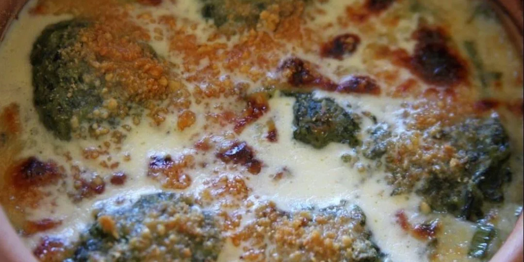 Malfatti de espinaca, verdeo y ricotta gratinados en salsa de quesos