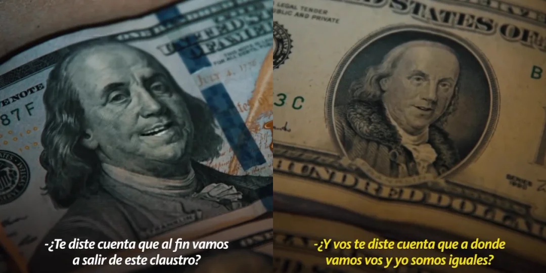 El BNA realizó un sketch humorístico con los dólares cara grande y cara chica. "¿Te diste cuenta de que al fin vamos a salir de este claustro?", tiró cara grande. La respuesta de cara chica fue "obvio, ¿y vos te diste cuenta que a donde vamos vos y yo somos iguales?", y luego se ríe, haciendo referencia a la avivada de las casas de cambios, en la cual, solo respetaban el valor del dinero si respetaban ciertas características del mismo.