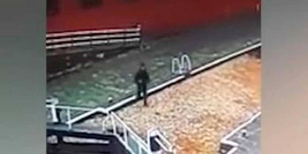 Las cámaras de seguridad de un 'pub' grabaron cómo el hombre distraído con su celular en la mano va derecho hacia el agua. Cuando levanta la mirada ya tenía un pie dentro del canal.
