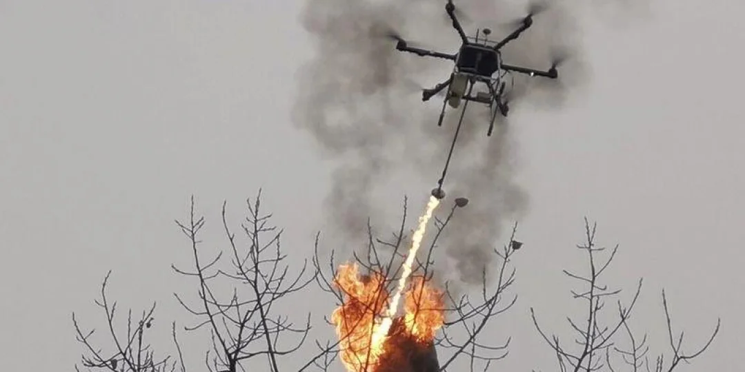 China: utilizan un dron lanzallamas para quemar nidos de avispas en la altura