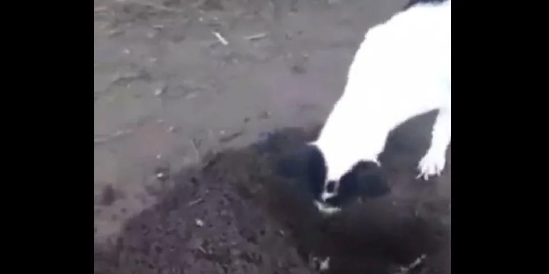 El desgarrador video de una perra enterrando a su cachorro recién fallecido