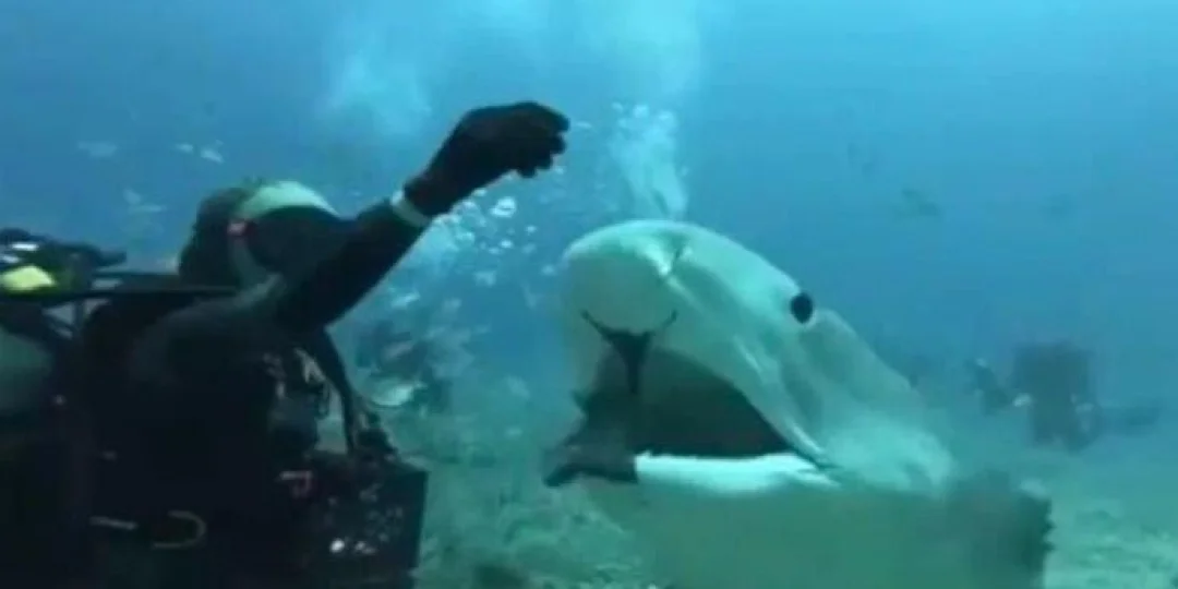 Esta buceadora le da de comer en la boca a un temible tiburón tigre