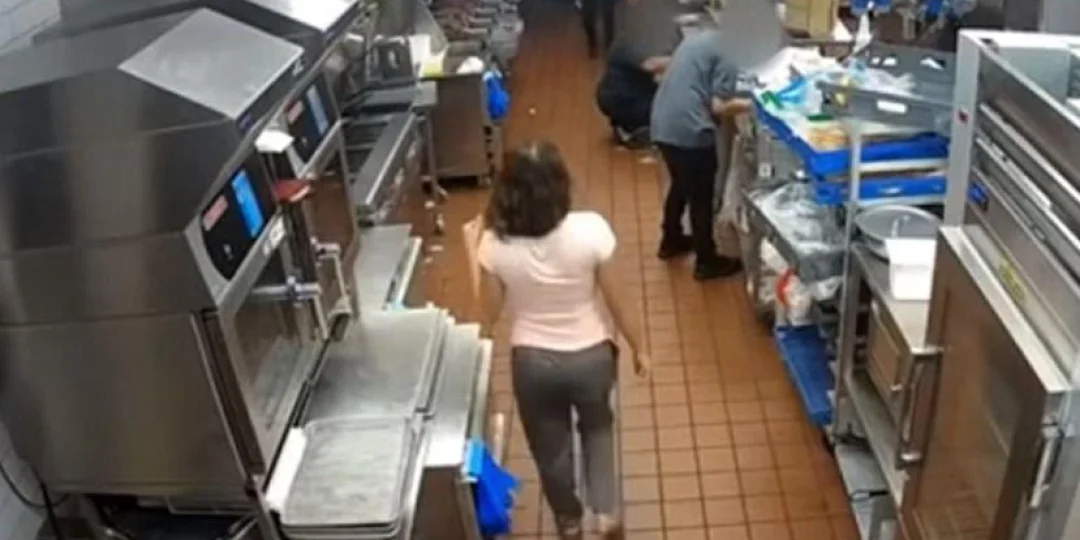 La furiosa mujer ingresó a la cocina del local de comidas rápidas y arremetió con golpes, tirones de cabello y maniobras de asfixia contra una de las empleadas. VIDEO