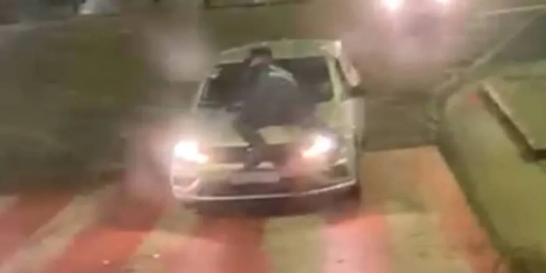 El conductor llevó al policía en el capot tres cuadras con una niña a bordo