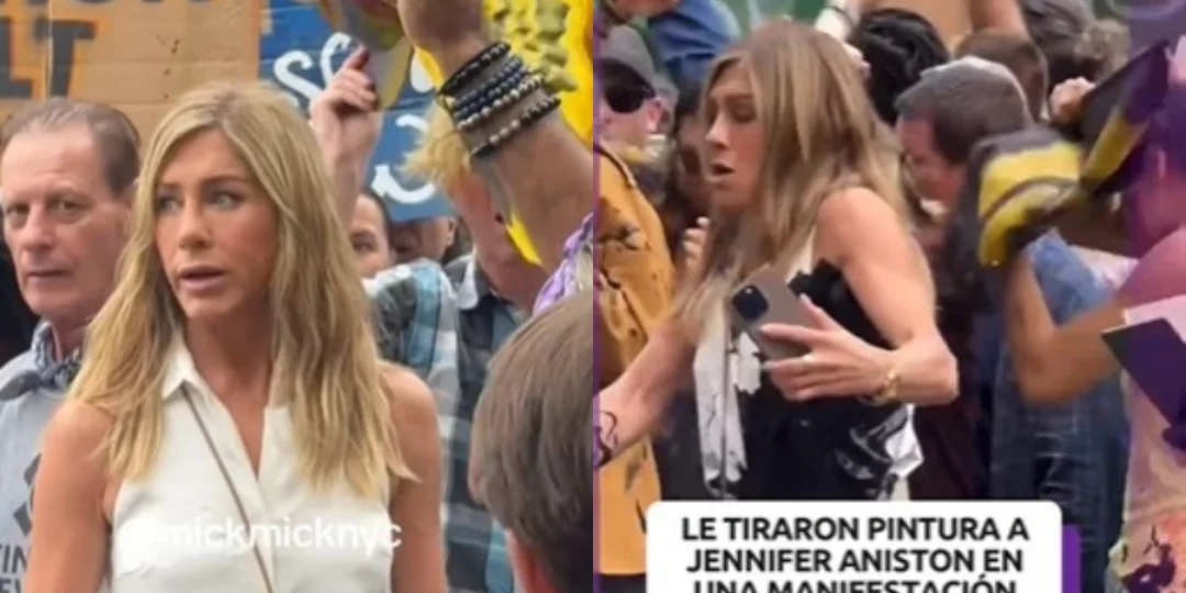 El mundo digital especulaba si Jennifer Aniston se había unido a algún sindicato para reclamar sobre una problemática comunitaria. Lejos de eso, su imagen se hizo tendencia por una inesperada escena: fue rociada con pintura en pleno Nueva York.
