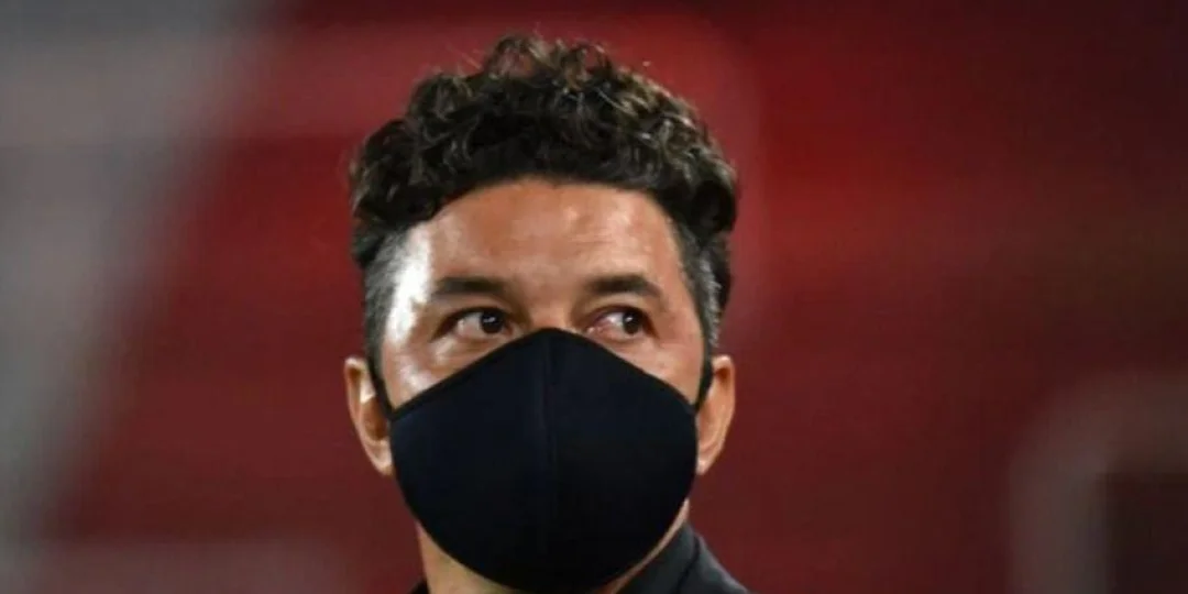 Marcelo Gallardo protagonizó un ¿blooper? por el barbijo en conferencia de prensa