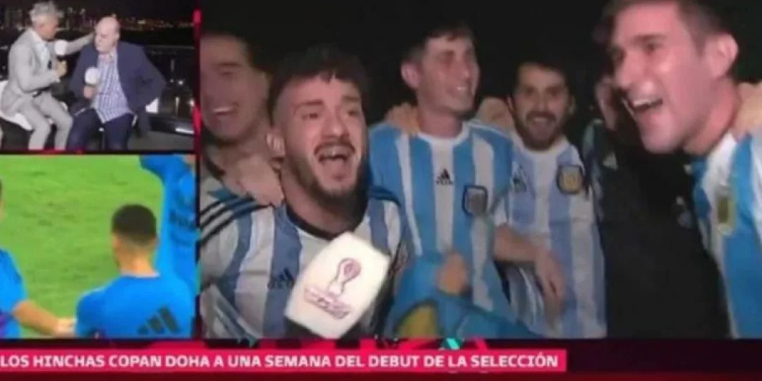 En el caso de los hinchas argentinos, que aguardan el inicio del Mundial de Qatar 2022, aprovecharon que tenían una cámara enfrente de TyC Sports y comenzaron a cantar.