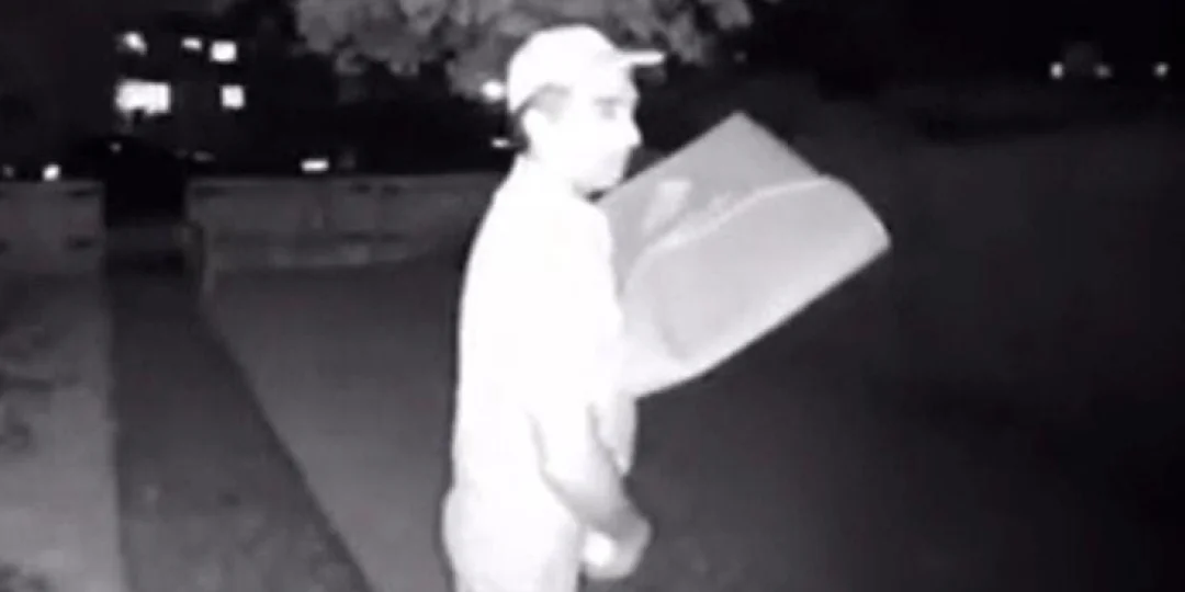 El trabajador de la cadena de comidas Domino's Pizza no contó con que la casa donde entregaba un pedido tenía una cámara de vigilancia.