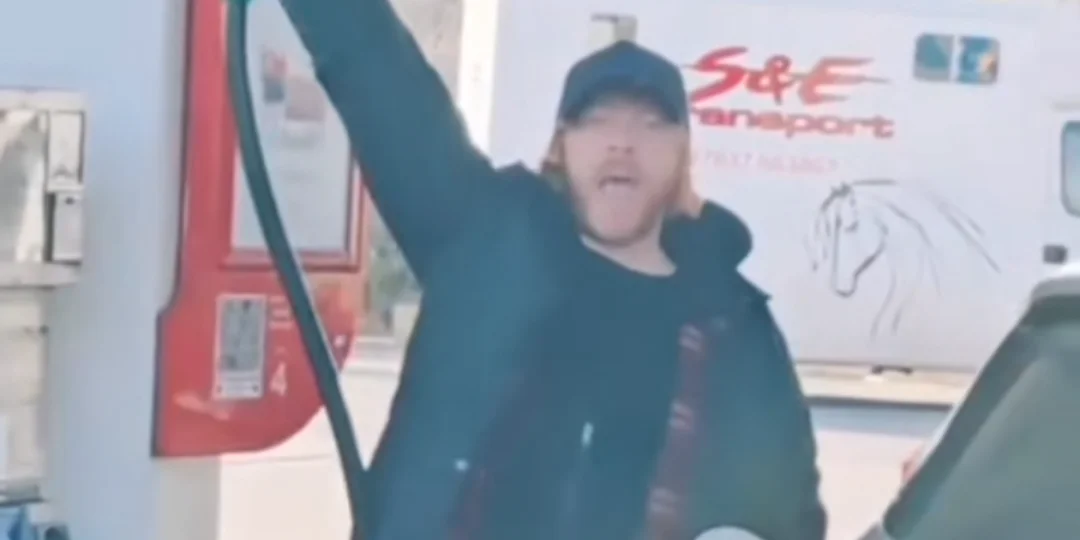 La frase traducida en español significa "la gasolina está cara". El actor pensó que su pequeña protesta sería una divertida ocurrencia, pero lo que empezó como una broma se convirtió rápidamente en una escena épica, mientras levantaba la manguera del surtidor como si fuera una varita mágica.