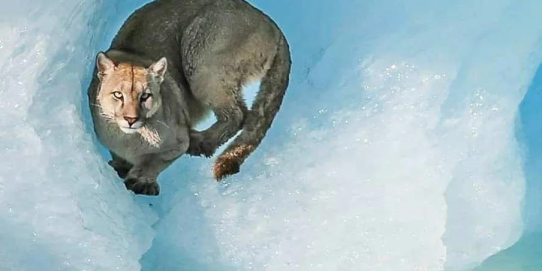 Turistas filman a un puma trepando un iceberg en Santa Cruz