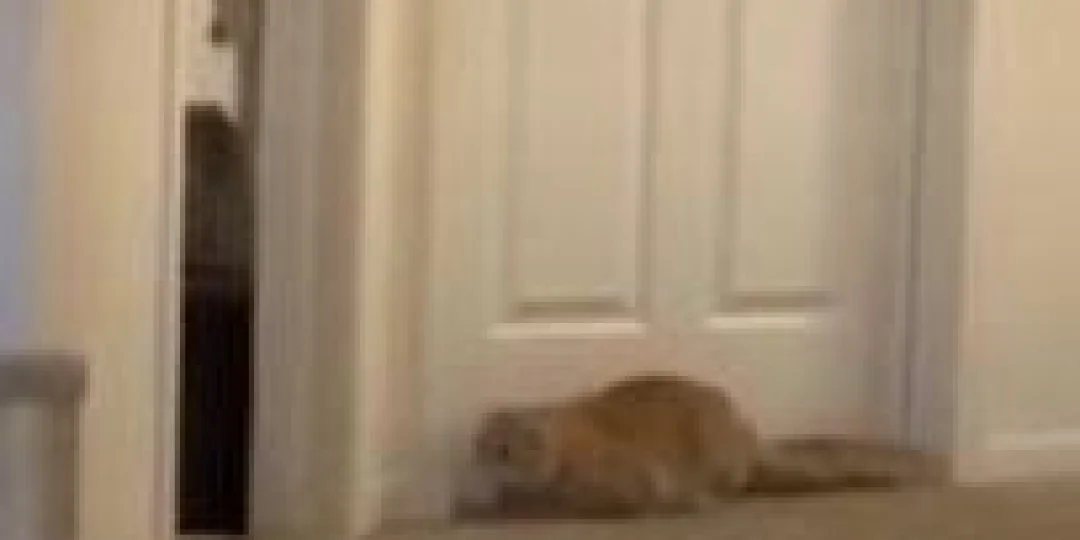 En la publicación del video viral, los amos de estas dos adorables mascotas relataron que este comportamiento es usual en ellos, y que desde hace tiempo disfrutan de verlos hacer este tipo de juegos. Como se puede ver en el video, el felino llamado George espera pacientemente en el umbral de una puerta a la aparición de su compañero. Cuando aparece, el susto le provoca una reacción que ha maravillado a cientos de miles de usuarios en YouTube y redes sociales.