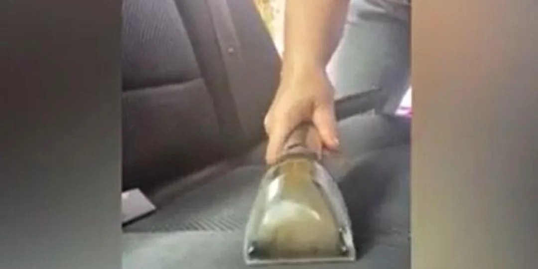 Utilizando una potente aspiradora transparente, una mujer frotó el asiento de su auto. Si bien parece que la superficie no presenta demasiada suciedad, lo que se puede ver en el interior de la aspiradora dice todo lo contrario.