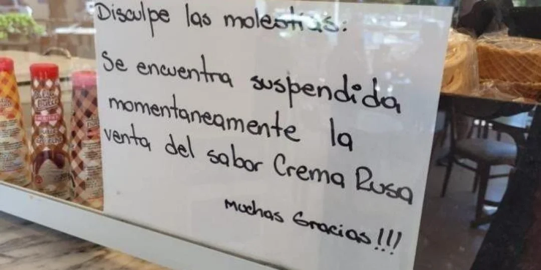 De esta manera, y al menos mientras la disputa geopolítica y militar entre Rusia y Ucrania continúe, los fanáticos de la crema rusa de este local deberán esperar para ordenar ese gusto en sus helados.