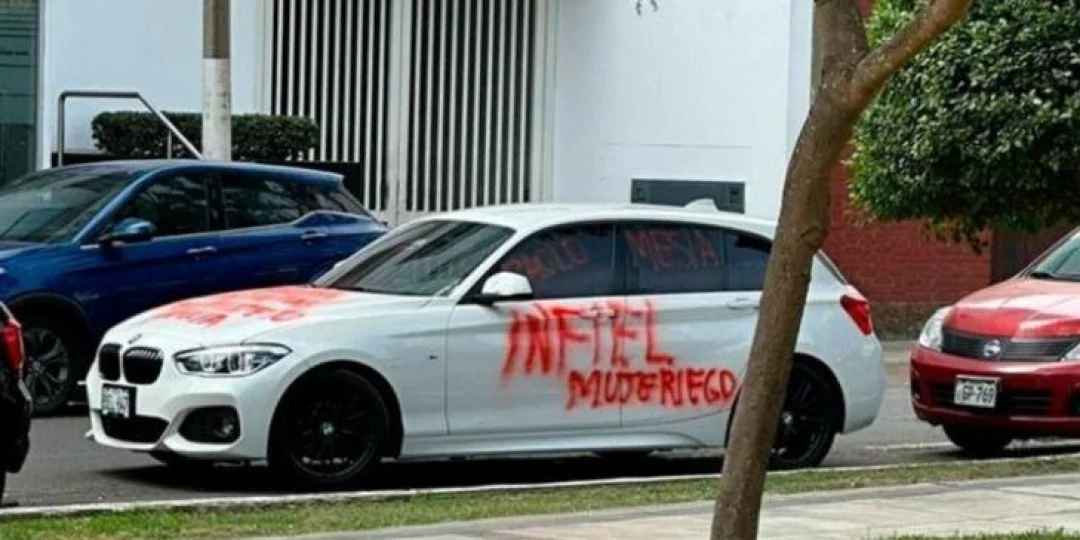 El video quedó grabado por una de las cámaras de seguridad de la zona y se puede ver cómo la mujer pintó mensajes en rojo en el auto del hombre por haberla engañado con otra mujer. En este sentido, la mujer escribió diversos mensajes y acusaciones en el BMW de color blanco: “Infiel”, “Mentiroso”, “Paolo Mesía”, “Tes gustan las p...” y “Destruiste tu familia”.