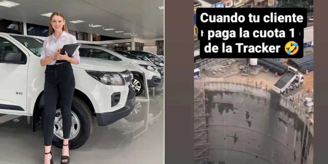 El meme que más se viralizó es uno que muestra a un camión volcando su carga dentro de un inmenso agujero en una obra de construcción. El camión y su carga se ven diminutos, junto al gran volumen del pozo: "Cuando tu cliente paga la Cuota 1 de la Tracker", escribió @Solange_Buks, con un emoji riéndose a carcajadas.