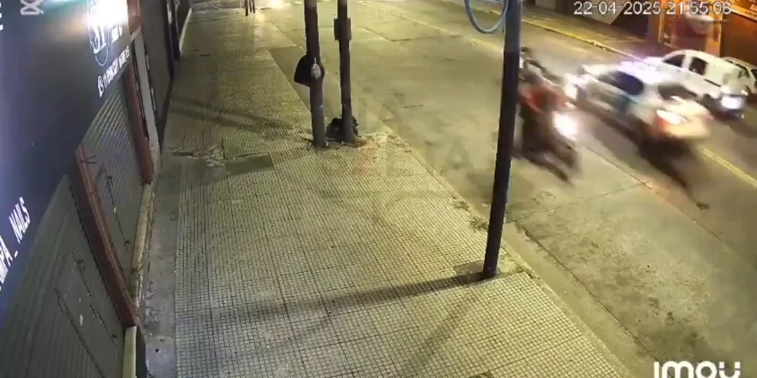 El impacto fue fatal y quedó registrado por un cámara de seguridad de lugar. El motociclista salió despedido, cayó contra el cordón y murió en el acto.