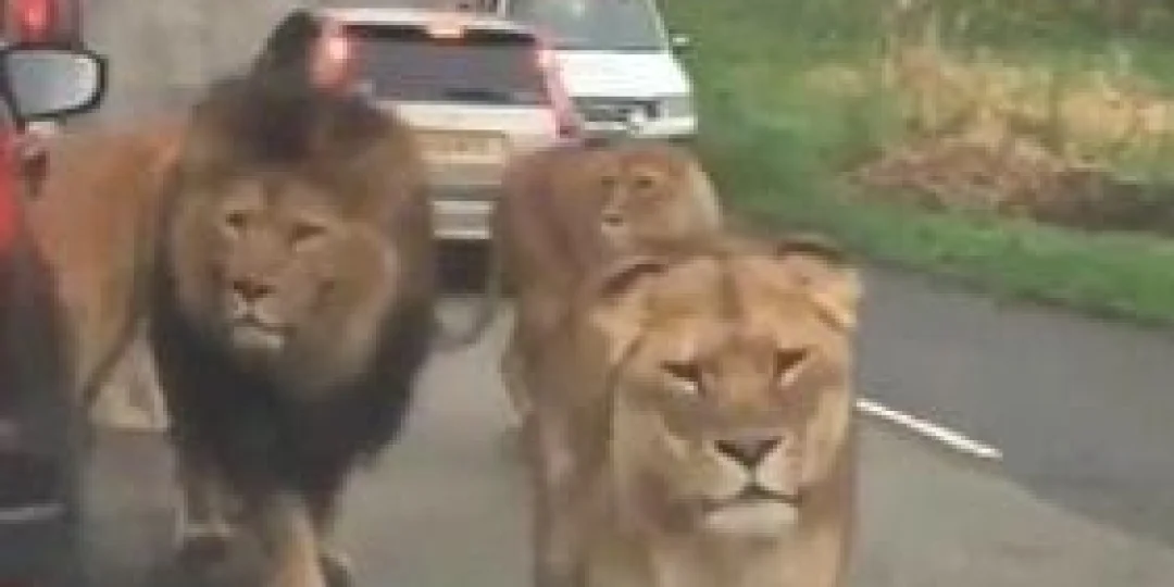 Video: Una manada de leones interrumpió el tránsito en la ruta y se paseó entre los autos