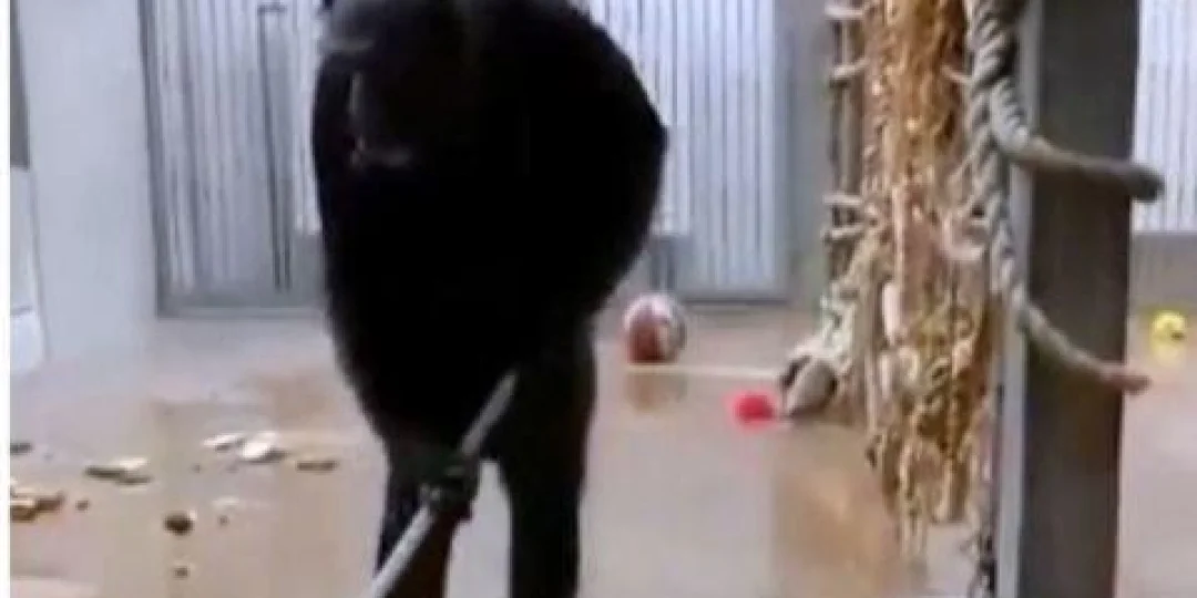 Viral: chimpancé encuentra una escoba en su jaula y se pone a limpiar